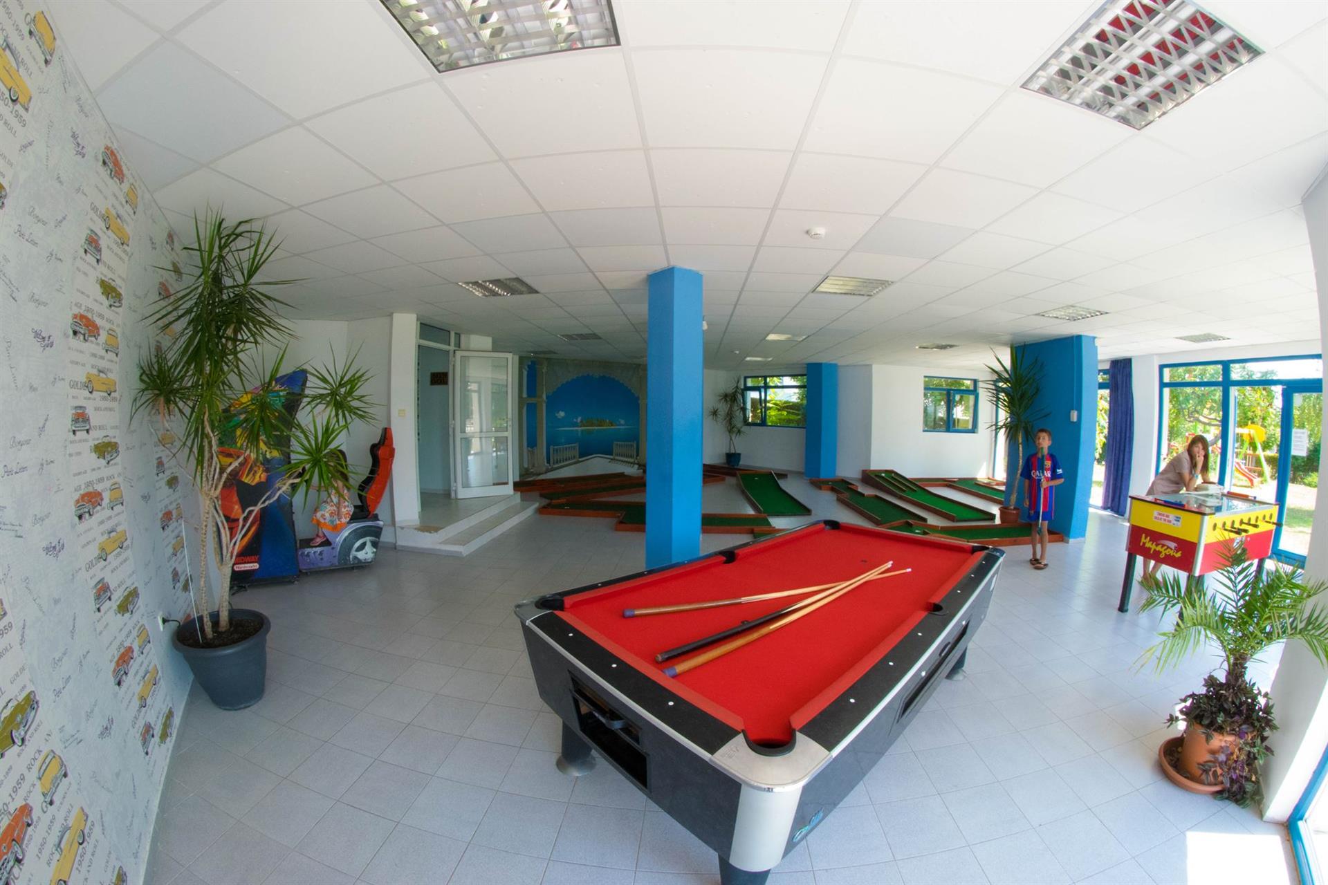 Бесплатно: фитнес-зал, настольный теннис , бочча , дартс / шахматы, мини-футбол , волейбол / мини-гольф / аэробика , аква-гимнастика , анимационные программы. Платно: теннисный корт, бильярд , массаж, сауна , интернет-кафе , водные виды спорта на пляже. Для детей: детская кроватка (за доп. плату) , детский стульчик для кормления , детский бассейн, мини-клуб, детская площадка.