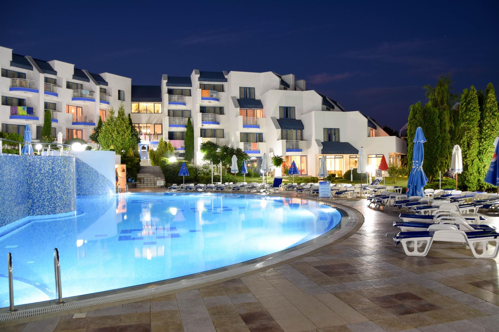 Расположен на берегу моря, в 50 m от пляжа. Отель реконструирован в 2006 г. На территории: сейф за доп. плату на рецепции, обмен валюты, лобби-бар, дневной и ночные бары, дискотека, ресторан с террасой, открытый бассейн , парикмахерская, амфитеатр, прачечная, неохраняемая парковка, запрещено проживание с домашними питомцами. Пляж: общественный песчаный; зонты, шезлонги – платно. У бассейна: зонты, шезлонги - бесплатно.