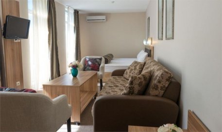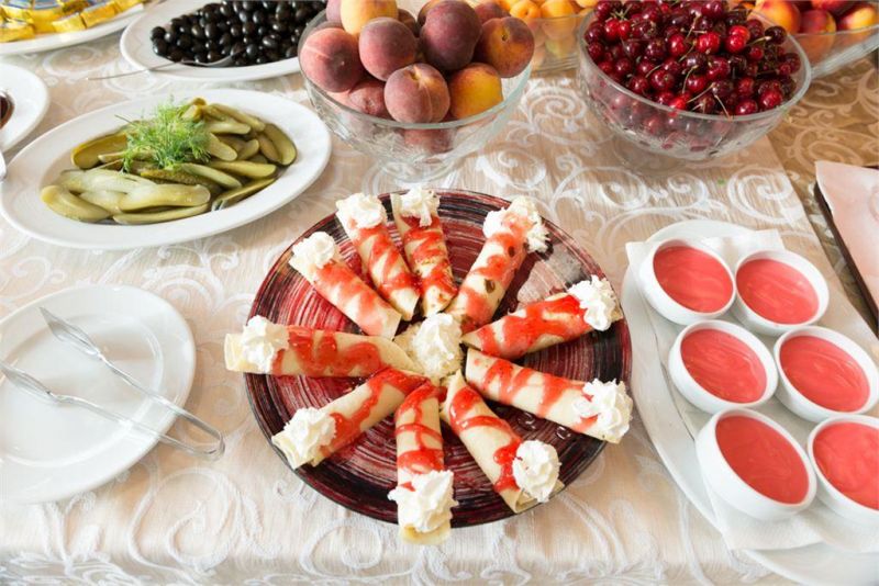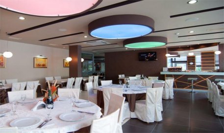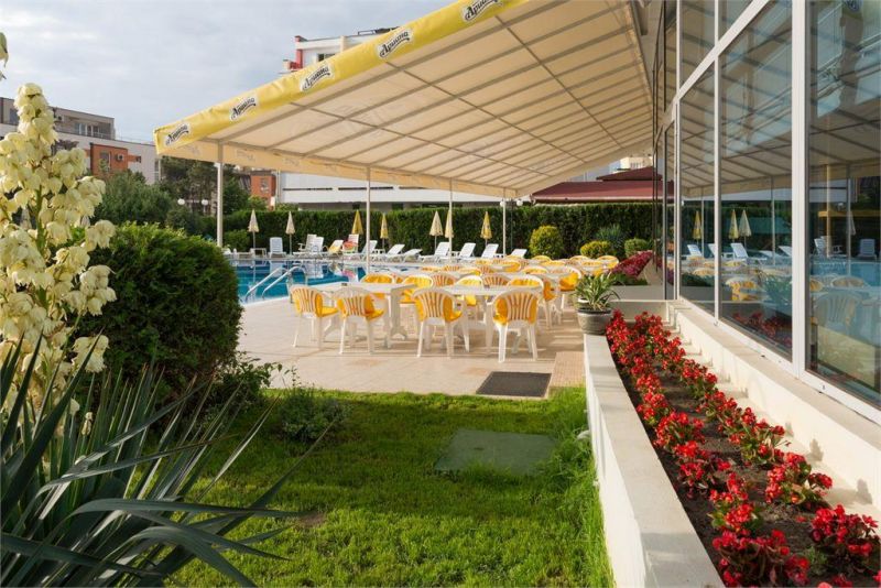 - ресторан с видом на сад, предлагаются блюда болгарской и европейской кухни