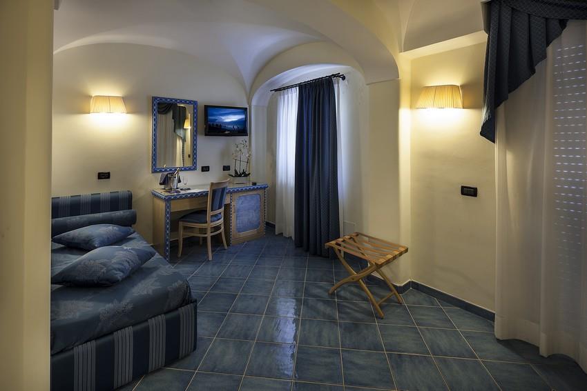 Спутниковое ТВ, телефон, кондиционер, сейф,мини-бар, ванная комната (ванна/душ, фен), балкон/веранда. Номера типа Standard Relais и Economy Agave расположены в корпусах через дорогу от основного здания отеля, однако гости могут пользоваться всей гостиничной инфраструктурой. В сьютах Poseidon и Faro изысканная отделка, антикварная мебель, ванна с гидромассажем, сенсориальный душ с хромотерапией, камин, телефон, фен, плазмовый ТВ с русскими каналами, кондиционер, мини-бар, сейф, халат, тапочки.